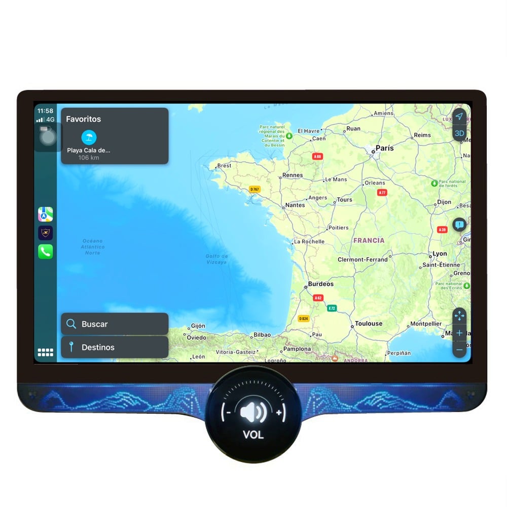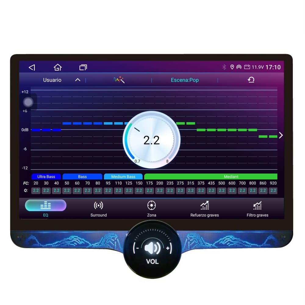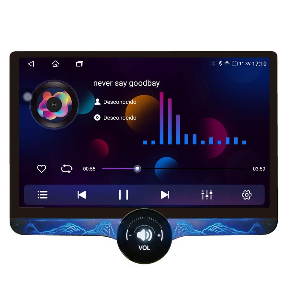 Unidad multimedia de 11.8″ de alta resolución con sistema Operativo Android e instalable sobre marco específico de 9 y 10″ EVUS ( No incluido ) en cualquier vehículo compatible.