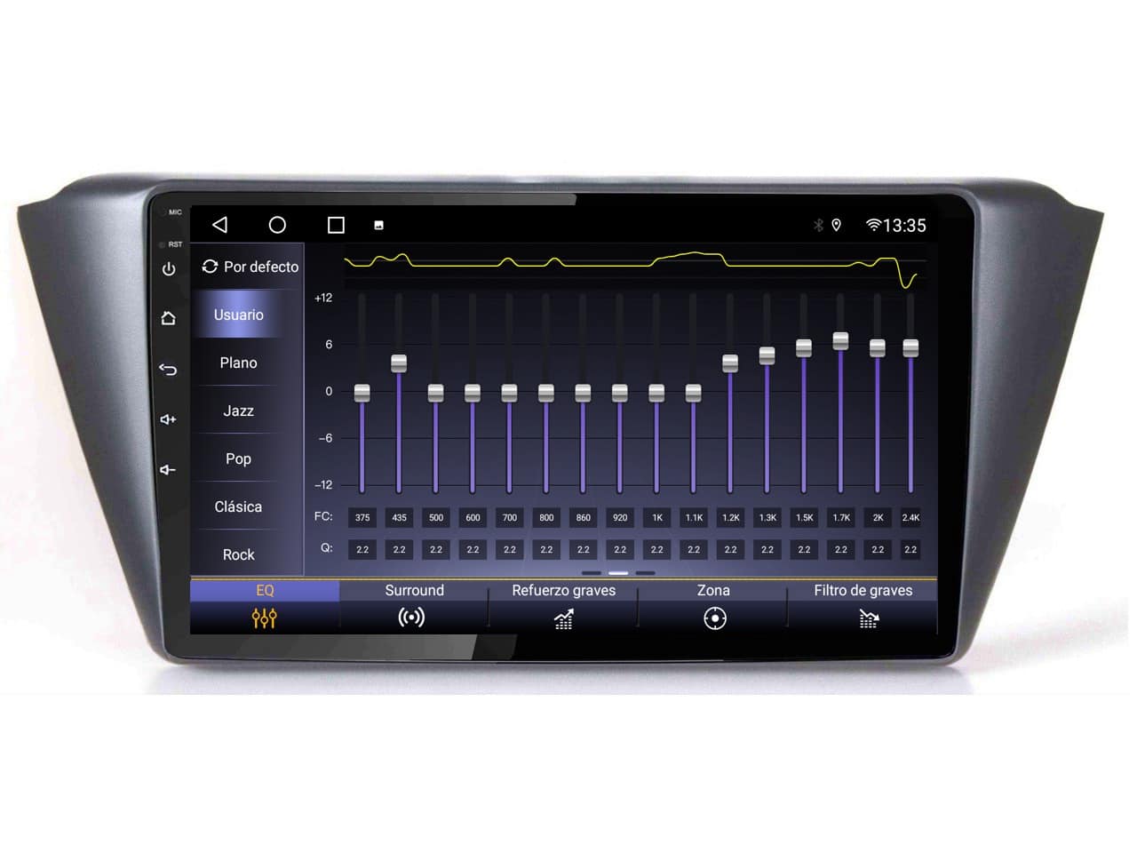 • Unidad multimedia con display táctil de 9″ capacitivo de alta resolución 1280 x 720p con perfecta integración estética.